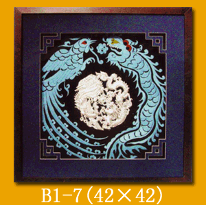 | 商品详情: 仰阿莎苗绣加银饰“银辉映彩绣”手工艺术品,有几十种规格。是不同图案和色彩的苗绣和手工打制不同纯银浮雕吉祥图案,组合而成。柏木框,精制硬纸盒包装。是观赏和收藏佳品。 “ 龙凤呈祥”